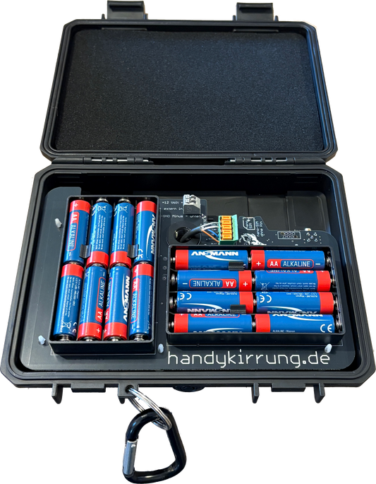 Es entstehen keine laufenden Nebenkosten. Die Handykirrung wird als Komplett-Set (Fass mit Auswurftechnik, SIM-Karte (eingelegt und aktiviert; kein Abo, Guthaben ausreichend für mehrere Jahre, danach aufladbar oder gegen jede PIN-freie SIM-Karte austauschbar), Batterien, Flaschenzug, Spanngurte) geliefert und erfordert außer dem Aufhängen im Revier keine Montage oder weitere "Bastelei". Sie wird mit Standard AA-Batterien betrieben, welche voll geladen rund 2- 3 Monate halten. Für eine noch längere Batteriestandzeit können Sie die Variante mit 20Ah Lithium-Ionen-Akku wählen, welche kombiniert mit eingelegten AA-Batterien rund 4 -7 Monate ohne aufladen auskommt.